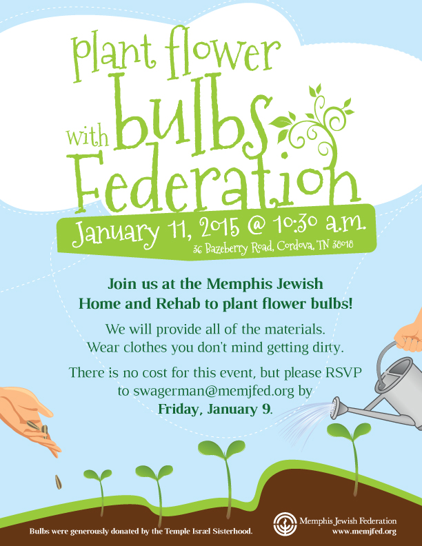 Join us at the Memphis Jewish Home and Rehab to plant flower bulbs! We will provide all of the materials. Wear clothes you don't mind getting dirty.
