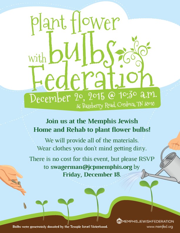 Join us at the Memphis Jewish Home and Rehab to plant flower bulbs! We will provide all of the materials. Wear clothes you don't mind getting dirty.