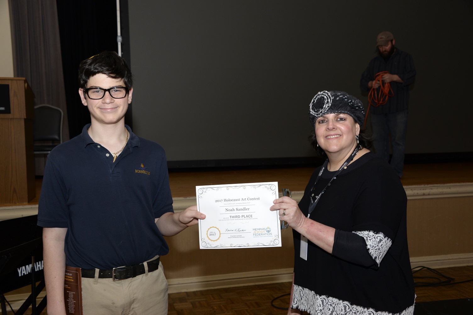 Memphis Jewish Federation’s 8th Annual Holocaust Art and Essay Competition drew an unprecedented 87 essay entries and 85 art entries from students in Tennessee and the Mid-South. This year’s theme was Degradation and Dehumanization: The Nazi Assault on Human Dignity. The contest was sponsored by the Memphis Commissioners of the Tennessee Holocaust Commission, along with their spouses: Jack and Marilyn Belz, Allen and Eileen Exelbierd, Jan and Andy Groveman, Josh and Joanna Lipman, and Leonid and Friderica Saharovici.